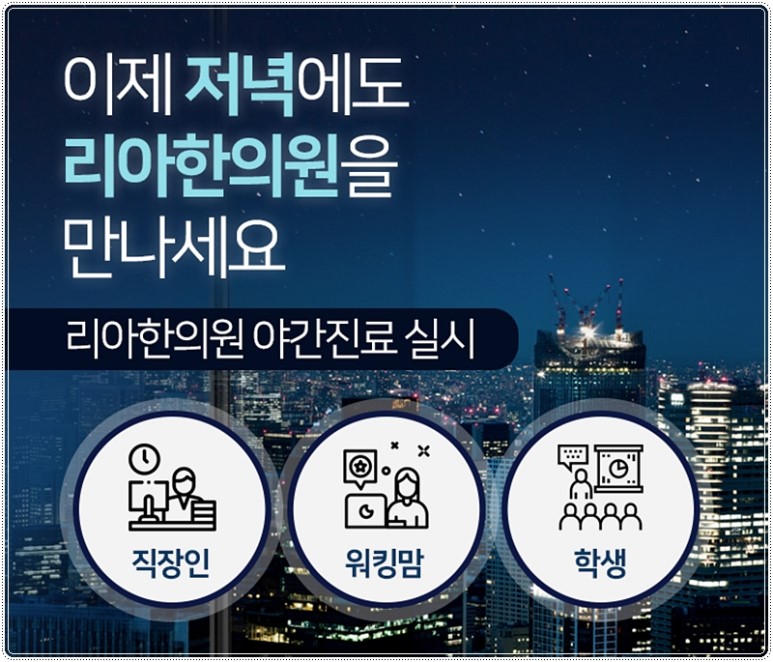 김포어깨통증 장기동 운양동 구래동 야간진료 한의원은 평일 매일 9시까지 야간진료 저녁 늦게까지 문을 여는 병원입니다.