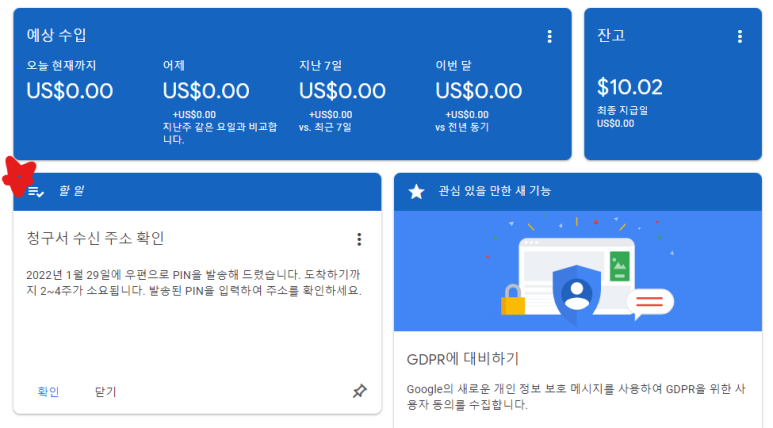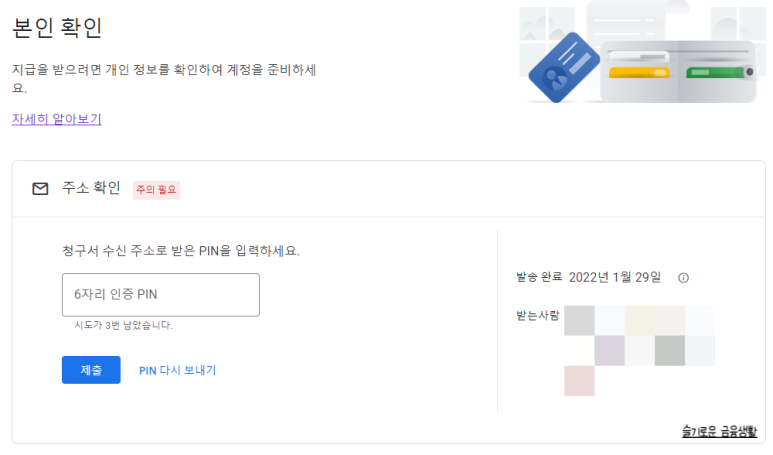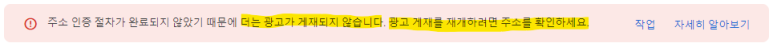 보이시나요? 광고가 안 나오는 이유는 주소 인증 절차가 완료되지 않았기 때문이라는 얘기가 되겠네요.그래서 더 이상 광고가 실리지 않는답니다.즉, 광고 개제를 하려면 주소를 확인하고 PIN 번호를 입력하는 수밖에 없습니다.4주만 걸리면 절망할지도 모르지만, 저는 다른 생각을 해요.