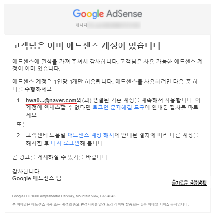 어드센스 어카운트가 있을 수 있습니다.+ PIN번호 재발급 [구글 어드센스] 고객님께서는 이미