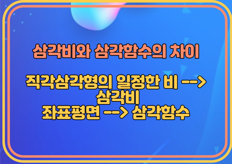 삼각비와 삼각관수의 차이 직각삼각형의 일정한 비 –> 삼각비 좌표 평면 –> 삼각함수