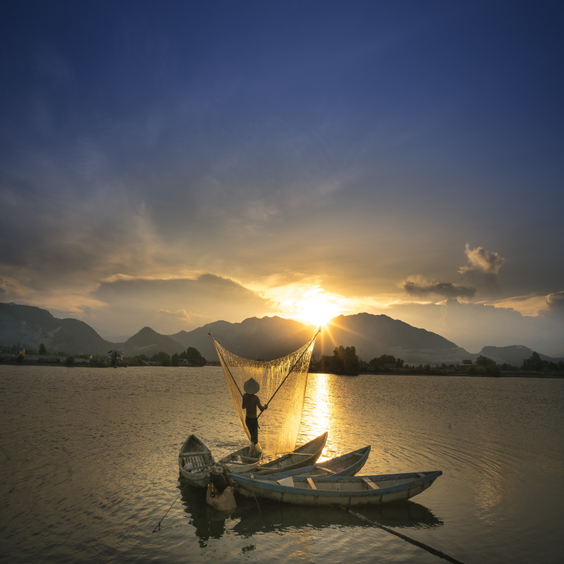 <배를 타고 그물로 많은 물고기를 잡는 꿈> 사람을 통해 일확천금의 꿈이 실현된다.