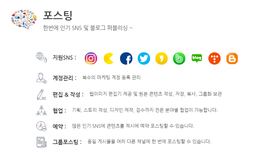스마트포스트를 이용하여 블로그를 포함한 카카오스토리, 트위터, 구글까지 이용할 수 있는 방법입니다. 현재 인스타그램 계정 추가 기능은 삭제되었네요. 이곳에서는 사진을 여러 장 실을 수 있습니다. 다만 유료 버전이기 때문에 별도 비용이 발생한다는 점 알아두시기 바랍니다.이상으로 인스타그램 PC 설치 방법 소개를 마치겠습니다. 도움이 되었다면 하단의 제 SNS 친구를 추가 부탁드립니다. 소중한 파티 멤버를 모집 중입니다. 수컷도 환영 내가 잘해줄게