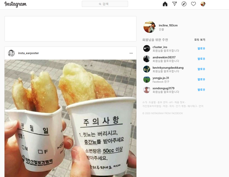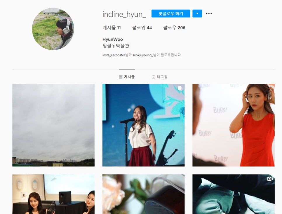 인스타그램 추천사진이 가능, 이미 온라인으로 사진을 게재한 분이라 별도 모자이크 처리하지 않고 있습니다.