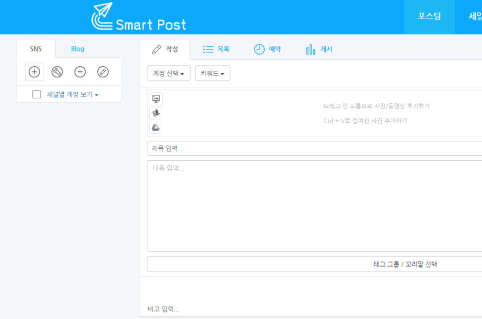 그럼 위와 같은 절차로 로그인이 이루어져 모바일 앱 인스타그램과 동일하게 사진을 포함한 스토리를 쓸 수 있습니다. DM을 보내는 것도 가능합니다. 단, 문장은 수정할 수 없습니다.사진 여러 장 업로드 후 스토리 작성은 불가합니다. 사진을 몇 장 올리는 방법을 선택하려면 다음과 같습니다만, 유료 버전이라 사실 저는 비추지 않습니다. 간단하게 보겠습니다.셋째, 스마트 포스트 이용(월액 유료 버전이므로 자세한 설명은 생략)