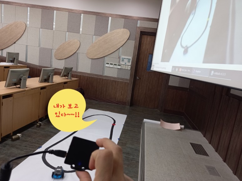 자율주행자동차 수업을 위해 엠봇2와 오랜만에 스마트 카메라를 준비해 갔습니다.스마트 카메라는 라인 인식, 컬러 인식, 바코드 인식 등 비전 인식 체험을 위해 가져갔는데…. 스마트폰의 새로운 발견을 하는 교육이기도 했습니다.