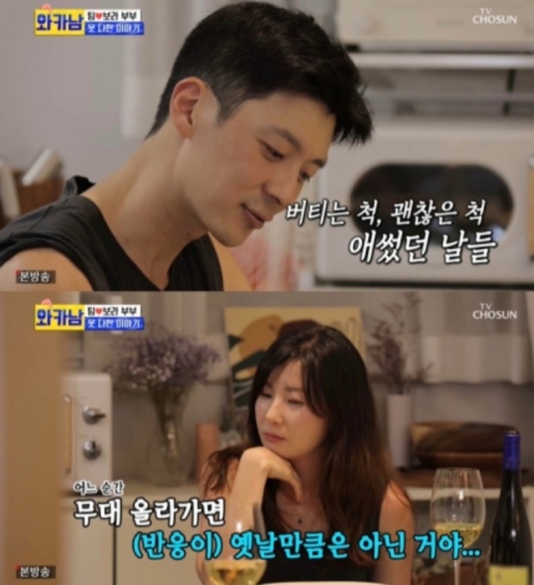 팀: 옛날에 무대에 섰을 때 반응에서 기쁨과 에너지를 느꼈다 근데 어느 순간 무대에 올라가면 반응이 예전 같지 않아 이는 관계가 없어야 하지만 관계가 있었던 것이다. 당시 극단적인 선택까지 생각했을 정도로 힘들었다. 생각하면 너무 무서워서 마음이 찢어져.