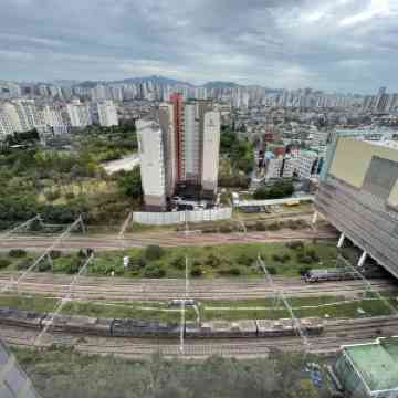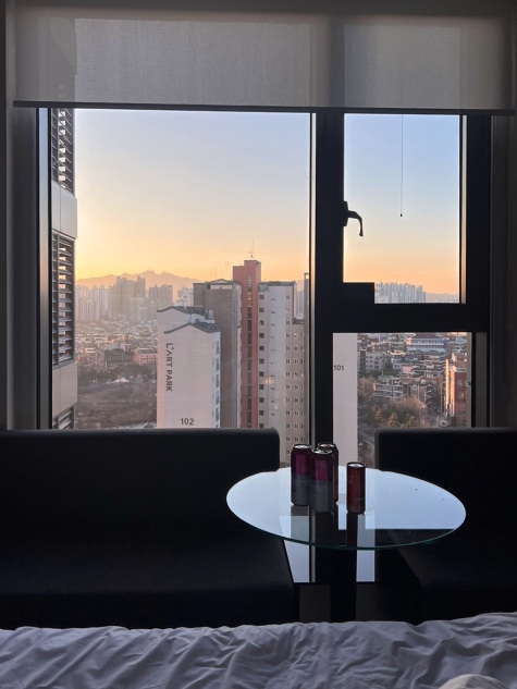 창밖의 뷰는 당연히 시내 뷰이고 먼 지하철을 지나는 모습도 보이겠죠. 바람이 잘 통하고 채광이 좋아 밖을 보는 재미도 있습니다.