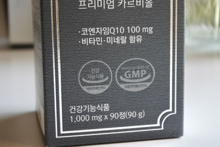 프리미엄 카르비올은 이렇게 용기 안에 들어 있다.안에는 총 90알이 담겨 있으며 하루에 3알씩 먹는 것으로 미루어 보면 약 한 달 정도 분량이다.