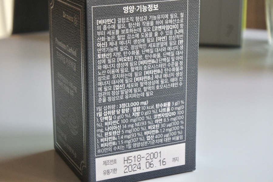 프리미엄 카르비올은 하루 3정을 섭취하면 되지만 한 번에 3알 모두 섭취하는 것보다는 1회 1정을 섭취하는 것이 좋을 것 같다.고혈압약처럼 먹기보다는 평소 관리해주는 영양제 개념으로 먹으면 좋을 것 같다.