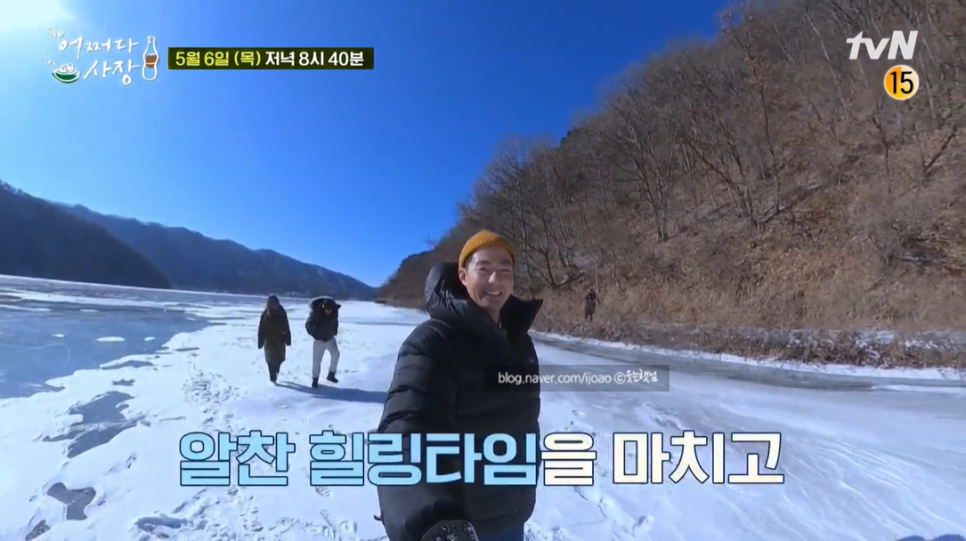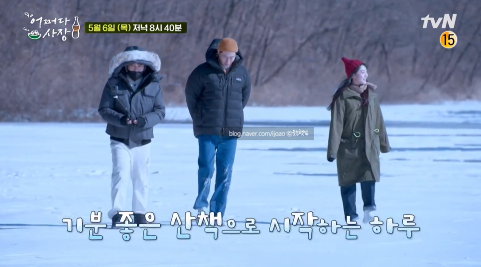아침 식사 후 마을 산보에 나선 세 사람은 수북이 쌓인 얼음에서 아이처럼 장난치며 겨울을 즐겼다고 한다.