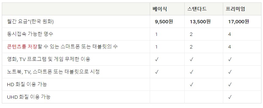 넷플릭스 요금제는 3가지로 나눌 수 있습니다.베이직 9500원 스탠다드 13.500원 프리미엄 17.000원 입니다.이는 2021년 8월 기준 프리미엄 가격의 경우 14.500원이었던 것을 보면 상당히 많이 올랐음을 느낄 수 있습니다.다행히 베이직의 경우 전년 요금제와 같은 모습을 볼 수 있습니다.하지만 동시 접속수를 보면 베이식의 경우 1명이니까 이것도 좀 비싼 가격이지 않을까 생각합니다.사실 가격면에서 보면 비싸서 가입을 망설일 수 있지만 영화를 보고 난 뒤엔 그렇지 않더군요.그럼 어떤 요금제가 좋을까요?