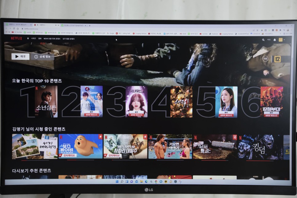 영화의 순위와 추천에서 조금 언급했지만 우리 영화의 작품성은 세계적으로 인정받는 수준입니다.이것은 코로나 감염증과도 잘 어울리고 있는 것일지도 모르겠네요.특히 스위트홈에서 큰 인기를 얻어 오징어 게임과 지옥. 지금 저희 학교는… 순서대로 인기를 끌고 있습니다.지금 넷플릭스 영화 추천 순위를 살펴보면 아래 사진처럼 한국 TOP 10을 보시면 알 수 있습니다. 1위는 소년 심판 2위의 25세 하나, 3위는 사내 맞선이라고 보이고 있습니다.