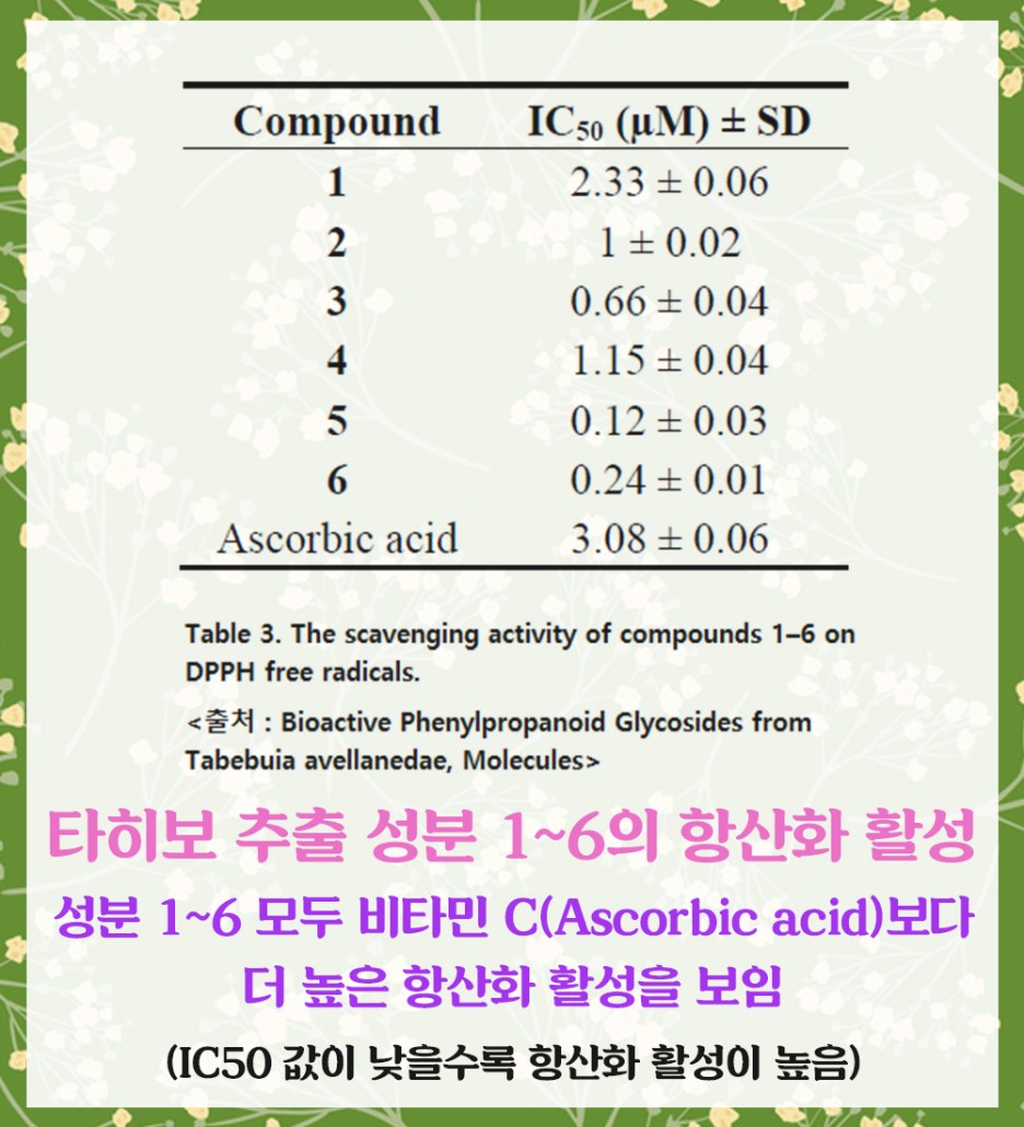 비타민C보다 우수한 항산화 효능을 가진 성분도 확인되었습니다.