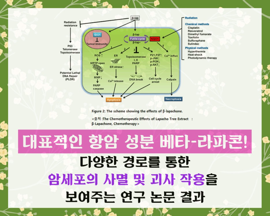 함유되어 있는 여러 성분 중 특히 항암 메커니즘이 밝혀진 베타-라파콘의 자료를 자세히 살펴보겠습니다.