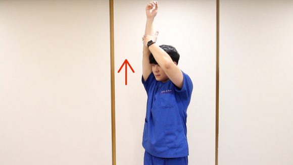• – 그 상태에서 받친 손으로 팔을 들어 올립니다. (10초 유지)