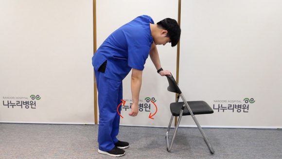 • 이때 어깨 쪽의 불편한 팔에 힘을 빼주세요. (10초 유지/20회 반복)