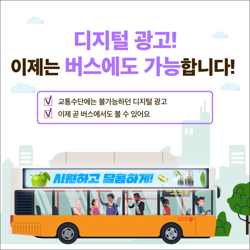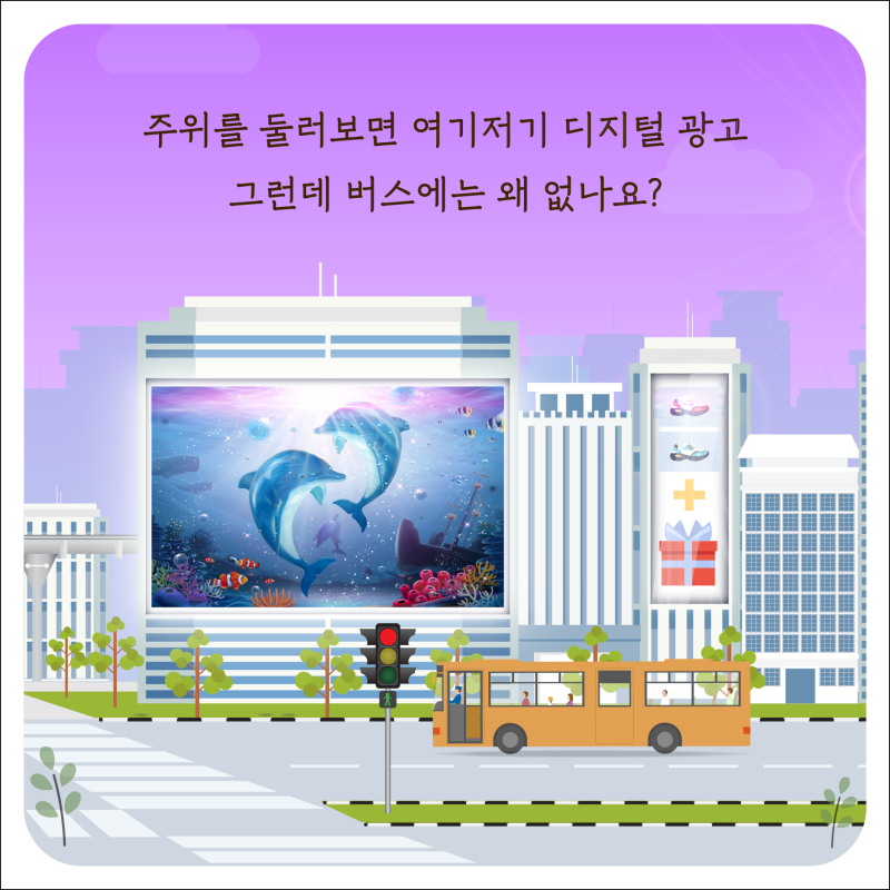 주위를 둘러보면 여기저기 디지털 광고인데 버스에는 왜 없나요? 디지털 광고! 지금은 버스에도 가능합니다!