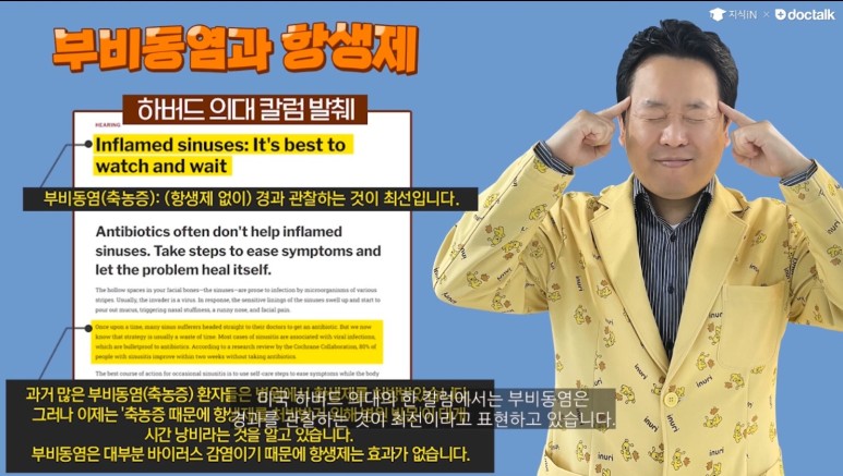 하버드 의대, 존스홉킨스 의대, 메이요클리닉, 미국소아과학회(AAP), 의학교과서, 미국 CBS CNN 뉴스에서도 축농증(부비강염)은 대부분 항생제가 필요 없다고 하던데.한국은 여전히 축농증이라면 항생제를 복용해야 하는 것으로 알고 있는 일반인과 의료진이 더 많습니다.축농증에 대한 올바른 치료법에 대해 알려드리겠습니다.