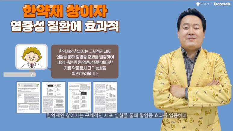 아이누리 한의원과 경희대학교 한의과대학 손영주 교수팀이 2년간 ‘한약재 추출 유효성분의 항염증 기능에 관한 연구’를 수행하였고 세포 실험을 통해 국내 최초로 과학적으로 증명하였습니다.한약재인 장이자는 세포실험을 통해 항염증 효과를 입증하고 비염, 축농증 등 염증성 질환에 대한 치료약물로서 그 기능성을 확인하였습니다.