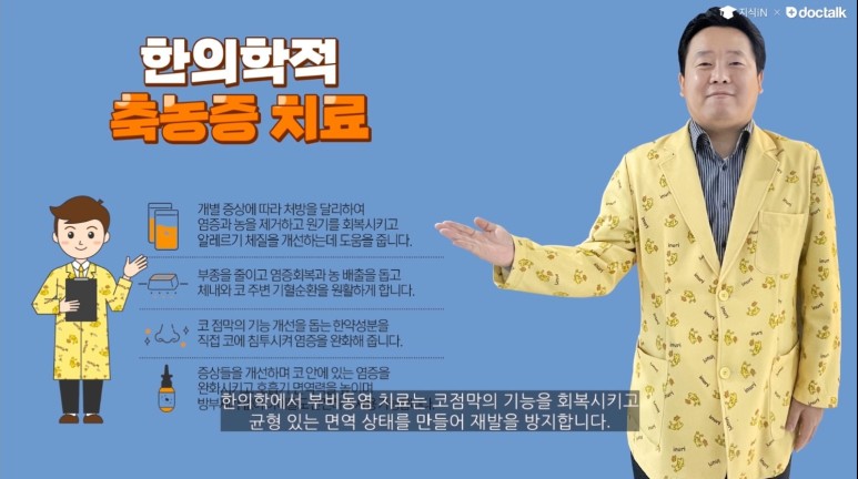 축농증, 부비강염과 관련하여 최근 네이버 지혜주머니 톡톡 동영상을 제작하였습니다.축농증, 부비강염과 관련하여 이미 수년간 방송이나 블로그에서 언급했듯이 핵심내용은 동일합니다.