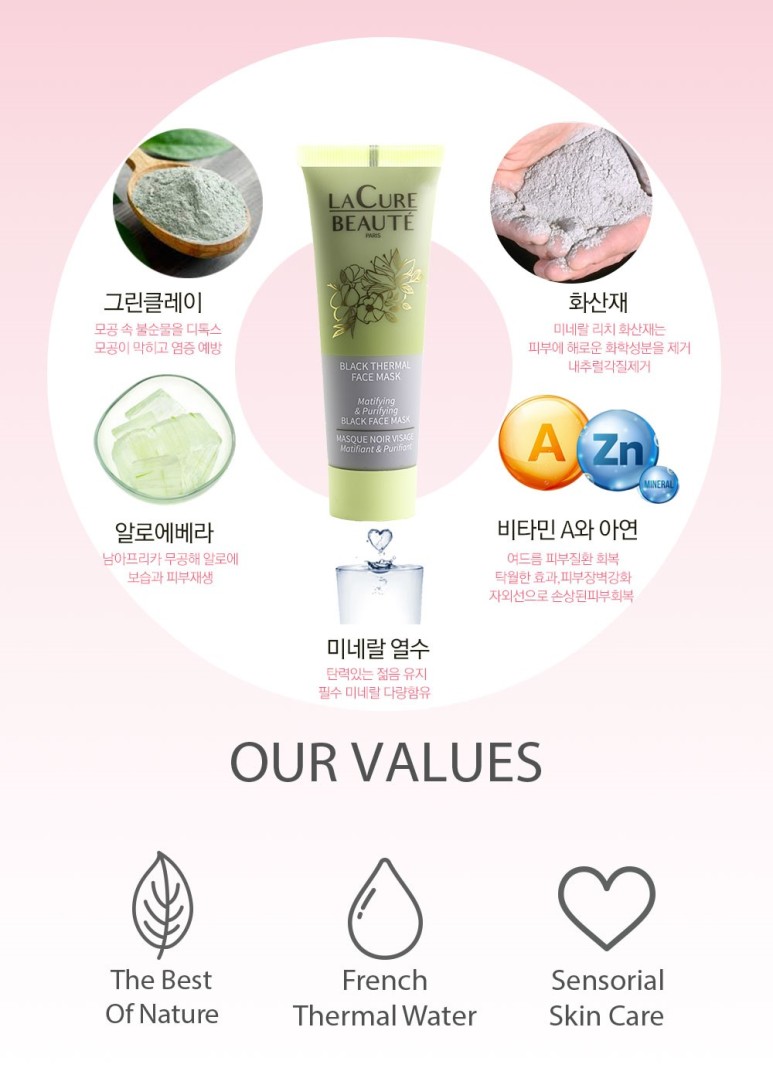 라큐르 보떼 블랙 써멀 마스크로 각종 노폐물을 말끔히 씻어내고 깨끗한 쌩얼에 좋은 기초 제품으로 발라 피부를 관리하세요.~