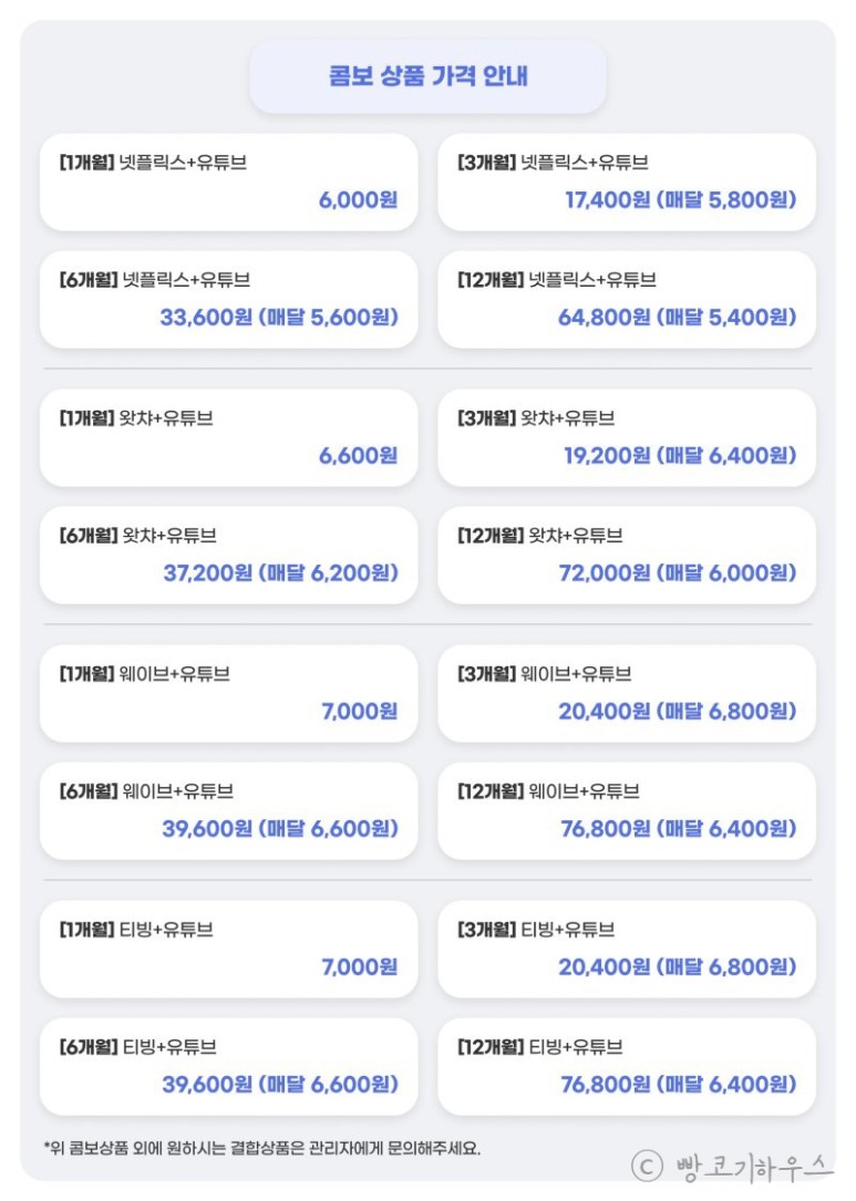 콤보 상품(여러 상품 함께)(쉐어 콘텐츠 계정 공유)