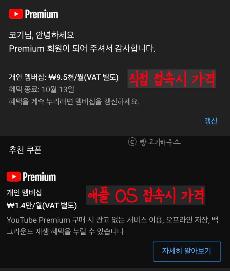 애플 OS 환경 (아이폰, iPad) 에서 유튜브 프리미엄을 구매하시는 경우!!!