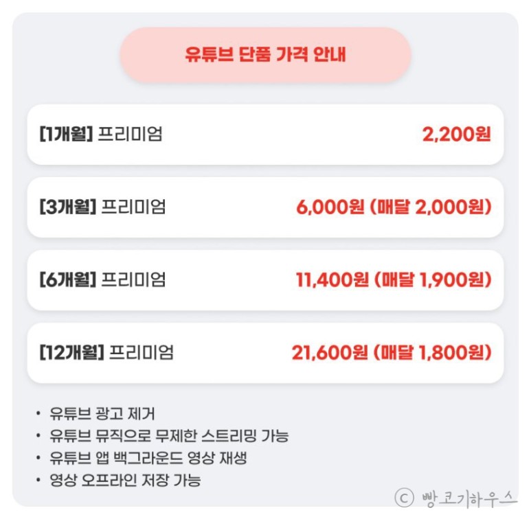 유튜브 프리미엄 가격(정상가)부터 볼까요?
