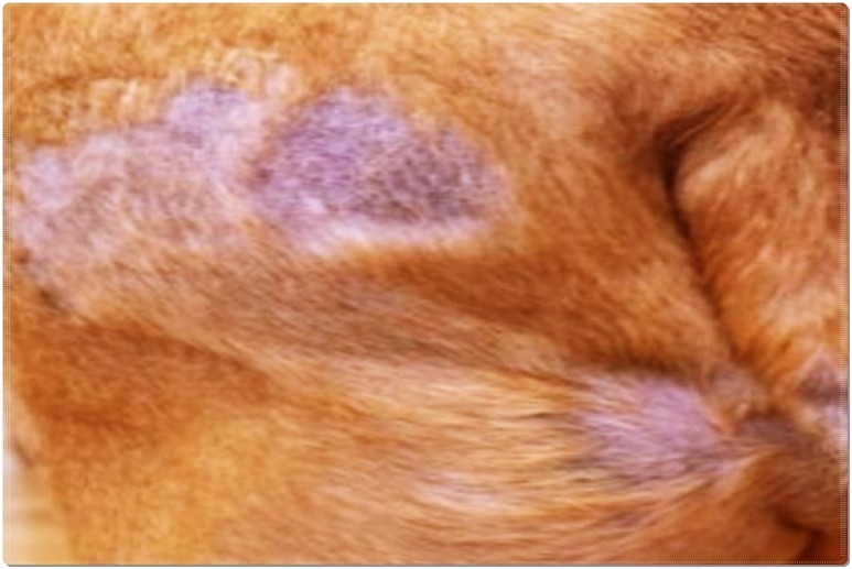 몸통과 뒷다리 강아지 탈모-탈모는 머리와 발을 제외하고 몸 전체에 발생하며 가렵거나 붉어지는 증상을 동반하지 않습니다.