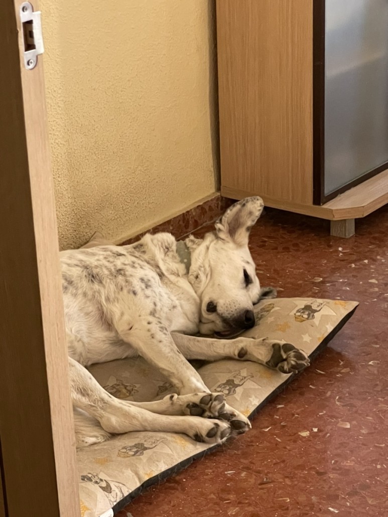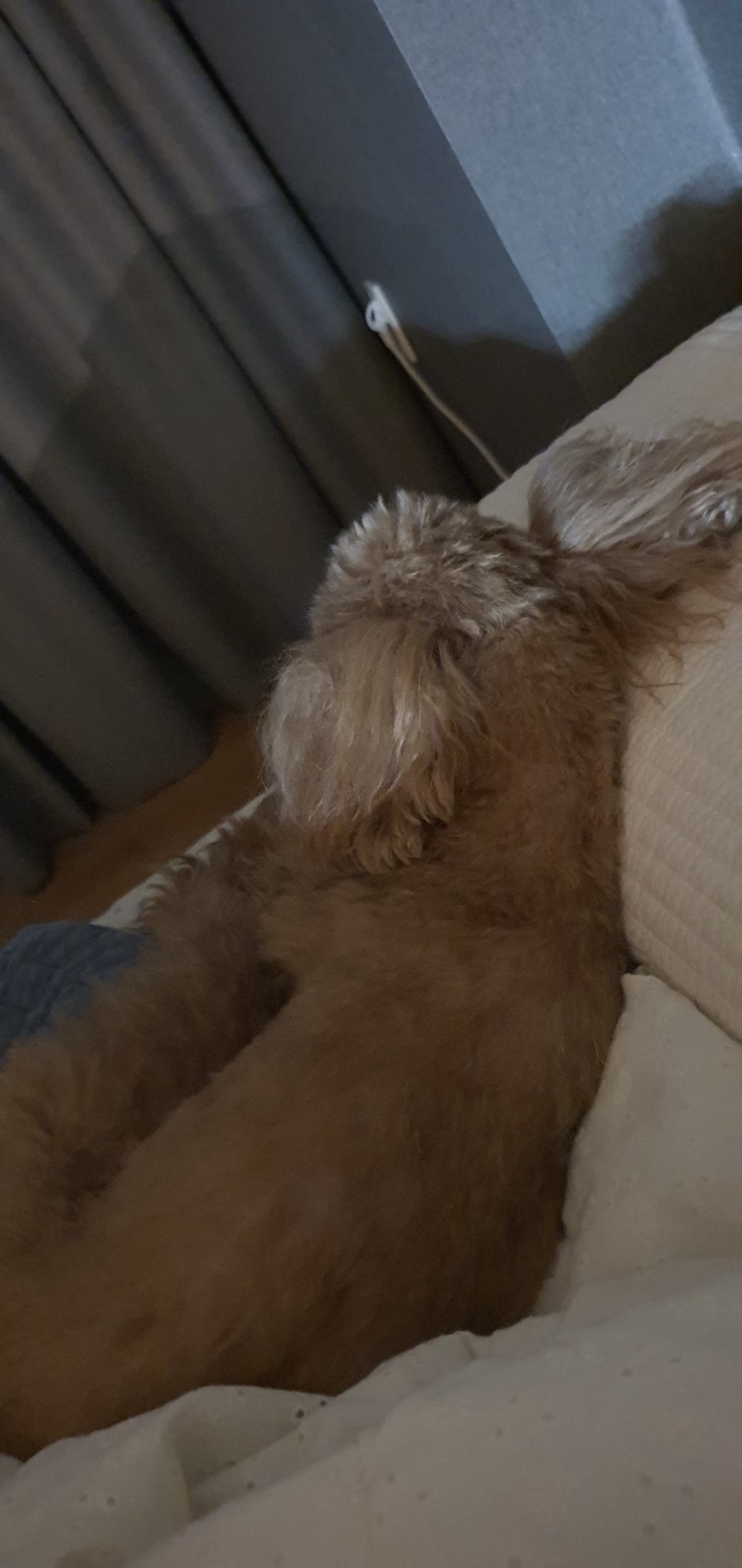 엄마가 보내준 사람처럼 자는 토토의 사진으로 마무리.