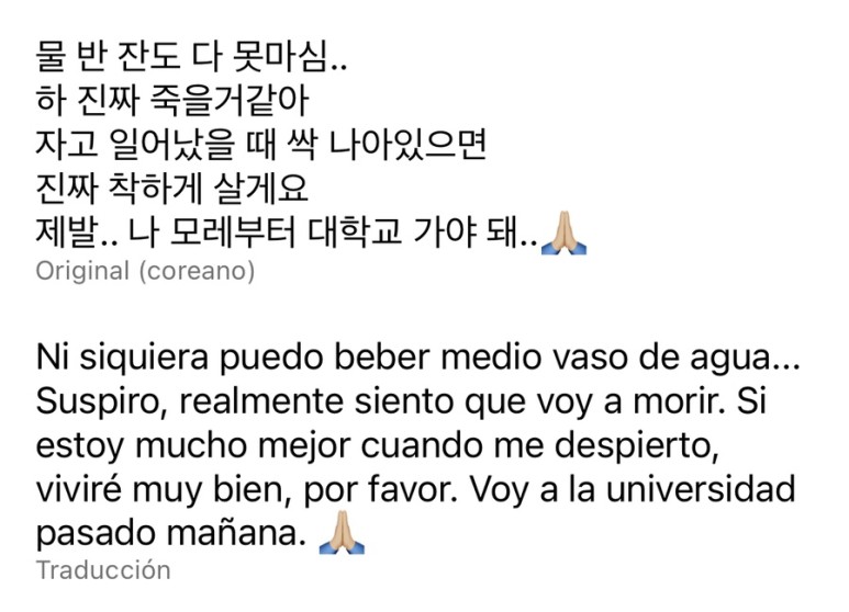이거 인스타에 이렇게 올린 건데 스페인어 번역이 너무 심각해지고 재밌어서 캡쳐한다. ㅋㅋㅋㅋㅋㅋㅋㅋㅋㅋㅋㅋㅋㅋㅋㅋㅋㅋㅋ 그냥 진심이 될 것 같아. 이런 뉘앙스인데 물 반도 못 마시는… 정말 죽을 것 같아요. 저는 내일 학교에 가야해요, 어때요? 이렇게 번역되어 있는 ㅋㅋㅋㅋㅋㅋㅋㅋㅋㅋㅋㅋㅋㅋㅋㅋㅋㅋㅋㅋㅋㅋㅋㅋㅋㅋㅋㅋㅋㅋㅋㅋㅋㅋㅋㅋㅋㅋㅋㅋ