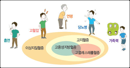 고지혈증은 혈관에 콜레스테롤, 중성지방이 쌓여 염증을 일으키는 질환입니다. 이상지질혈증이라고 불리기도 합니다. 혈관 벽이 터지면 뇌졸중이나 심근경색 같은 중증 심혈관 질환을 동반할 위험이 높습니다.