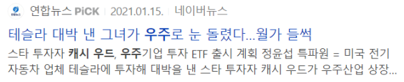 과거 테슬라 상장폐지 이야기에서 거론돼 위기 때 테슬라를 두둔한 사람인 캐서린우드의 어쿠인베스트도 우주항공 주제에 관심을 갖기 시작해 우주항공 관련 ETF를 내놓겠다고 계획했습니다. 어떤 종목이 담길지는 정확히 공개되지 않았지만 재사용 가능한 로켓, 궤도산업, 아궤도 드론, 수혜가능 기술 등에서 투자 초점을 맞췄다고 합니다.