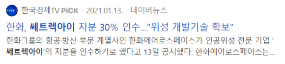 세트렉아이는 최근 소형/다양화 뉴스페이스 시장에서 큰 호재로 작용하는 것 같은데요. 민간업체들이 우주항공산업에 공격적인 투자를 하고 있는 만큼 여기서 위성 신규 수주가 이뤄지면 매출 분위기가 좋은 상태에서 쎄트렉아이의 주가가 더 오를 수 있어 긍정적으로 평가되는 부분입니다.