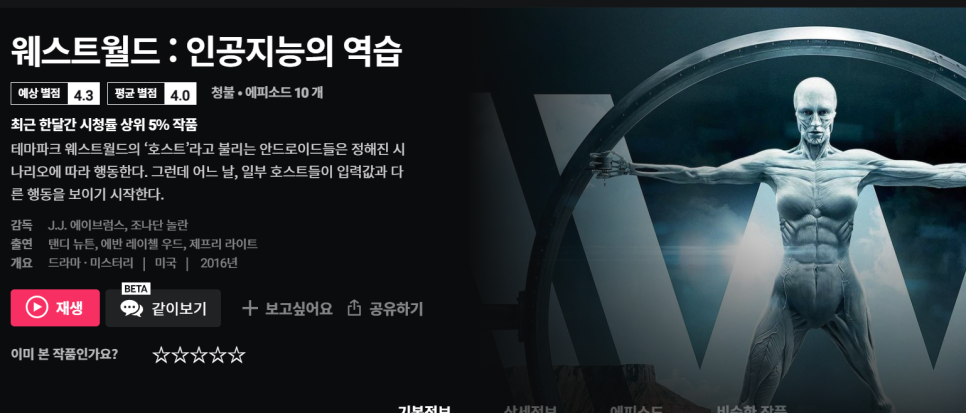 집에서 즐길 수 있는 큰 즐거움! 드라마 첫 주행인데 오늘은 와짜에서 볼 수 있는 미드 추천 웨스트 월드 리뷰를 해보겠습니다!