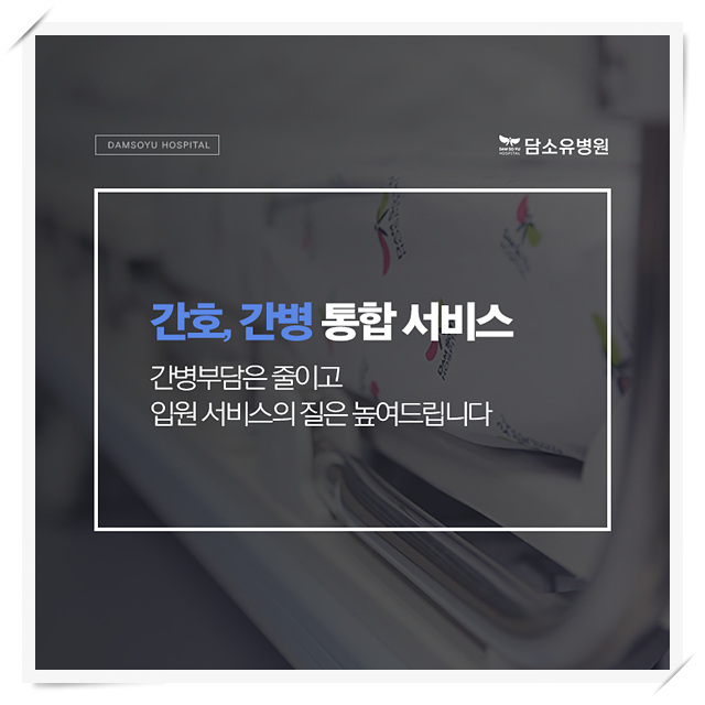 덧붙여, 간호비에 대한 비용도 최소화하기 위해서 간호 간호 간호 통합 서비스를 제공하고 있습니다.이러한 의료서비스는 입원의 질을 높이고 환자의 회복을 빠르게 도와주기 위해 1:1 전담 간호팀을 구성하여 항상 환자 곁을 지키고 있습니다.