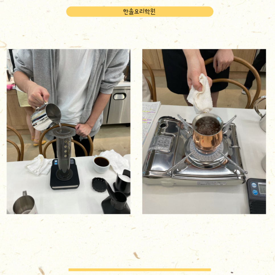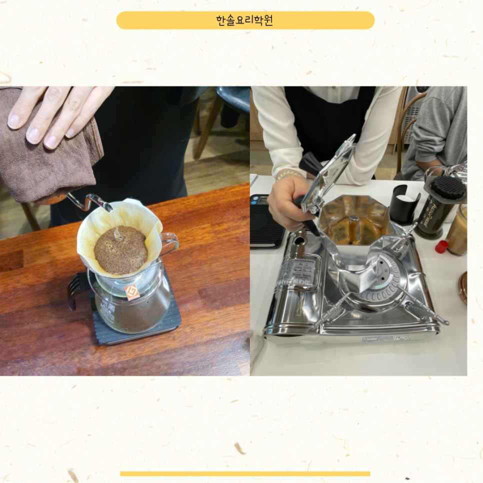 실습 후에는 강사가 1:1로 제가 커피 추출하는 과정이나 결과물에 대한 피드백을 주면서 리뷰까지 알려주는데 제가 부족한 부분에 있어서 최대한 객관적으로 해주신 덕분에 복습할 때도 주의해서 하니까 빠르게 보완할 수 있게 되었습니다. 그리고 마지막으로 제가 사용하던 실습조리대와 기구들을 정리하면서 수업을 마치게 됩니다. 혹시수업을마치고도모르는점이있으면강사님께서항상보충설명을해주시기때문에이런점도최대한활용하게되었습니다.