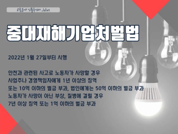 이 법이 2022년 1월 27일부터 시행되면서 점점 안전에 관심을 갖게 됐다.