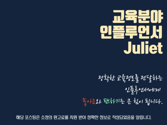 이상 교육분야 인플루언서 Juliet이었습니다.