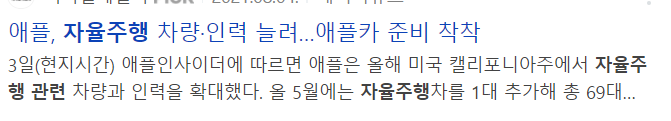 애플카 이슈에 따라서도 관련 주제가 움직일 수 있습니다. 애플의 브랜드가치는 어마어마합니다. 그만큼 브랜드 충성도가 높은 고객님이 많습니다. 애플이 소프트웨어를 탑재한 자율주행차 시장에 뛰어들 것이라는 화제가 작년 12월 말에 나왔습니다. 애플카 관련 이슈로 시장은 뜨거웠습니다. 누가 애플과 손을 잡을지에 대해 많은 사람들의 이목이 집중되기도 했습니다.일주일 전 LG전자와 마그마가 합작한 LG 마그마 이파워트레인이 유일한 협력사로 거론되기 시작했습니다. 인재 스카우트 협력 논의가 재등장하면서 애플카에 대한 기대감은 다시 높아지고 있는 상황입니다. 애플카는 2024년에 발매한다고 전망하고 있습니다. 애플에서 자율주행차를 내놓으면 관련 시장이 급격히 커질 것으로 예상하고 있습니다.