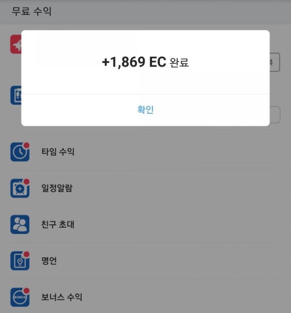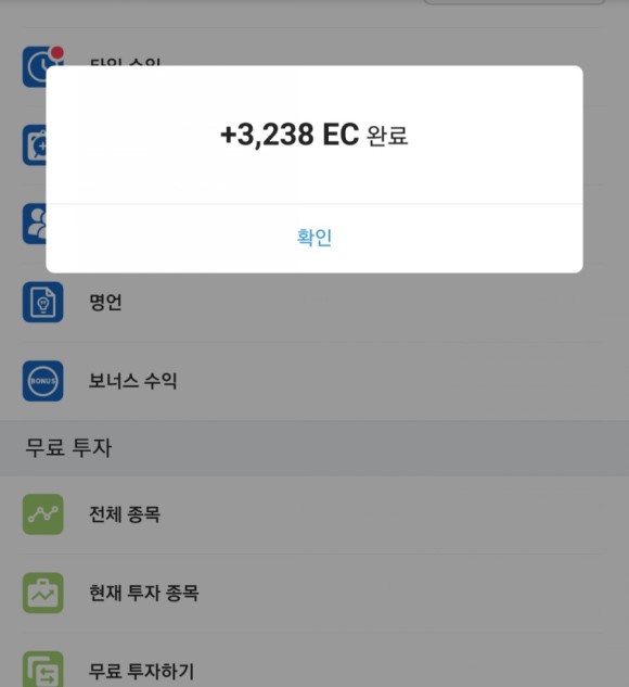 EC를 버는 방법은 무료 수익/무료 투자/코드 가입의 3가지 정도로,
