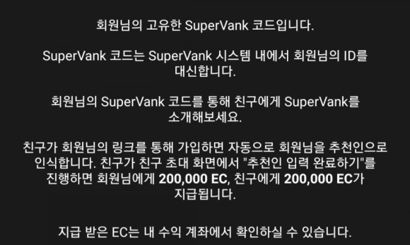 아는 사람이 있으면 아는 사람의 코드를 받아 적어도 되지만 그렇지 않으면 자신처럼 올려진 코드를 입력해 쓰면서 서로 EC를 획득할 수 있으니 윈윈의 샘이다.