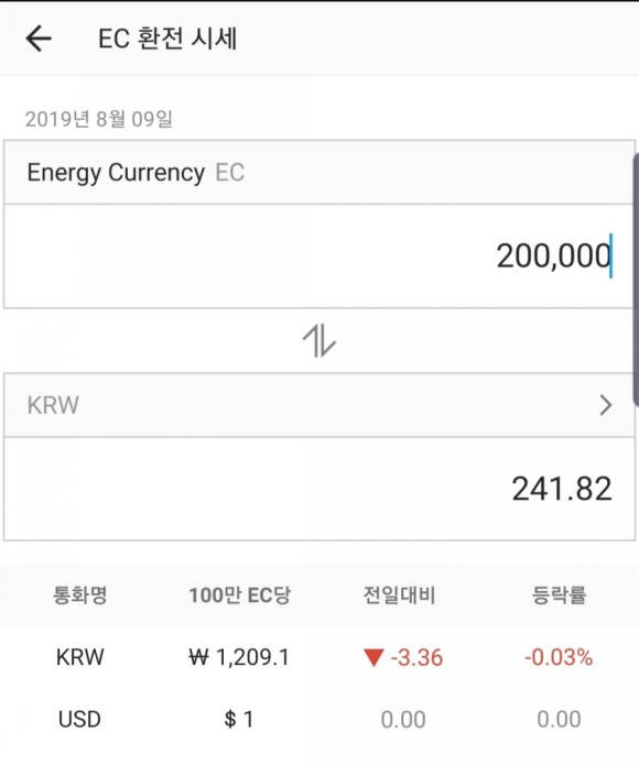 200000EC는 금일자의 EC환율기준(19.08.09)으로 241원 정도이다.(웃음)