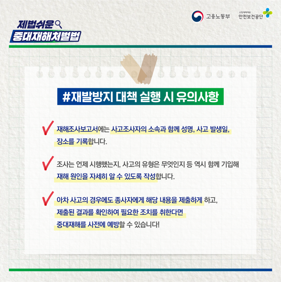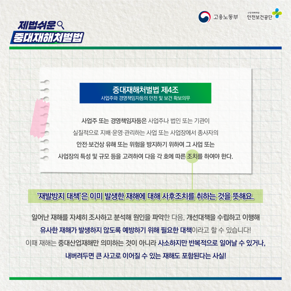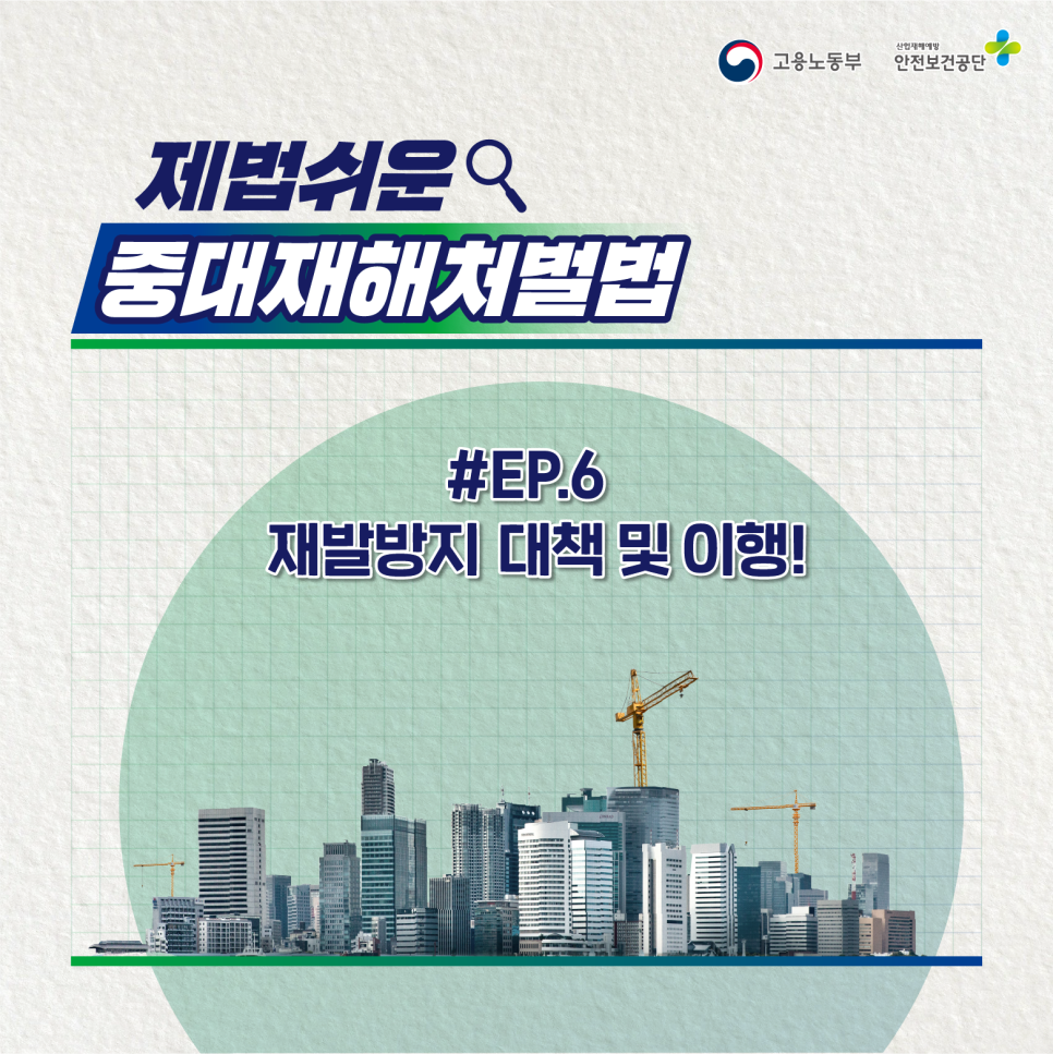 어렵고 멀게만 느껴지는 중대 재난처벌법?! 안전보건공단이 간단하게 알려드립니다! 중대 재해 처벌법의 모든 것을 알아보는 ‘꽤 간단한 중대 재해 처벌법’! 여섯 번째 에피소드, 재발 방지 대책 및 이행!