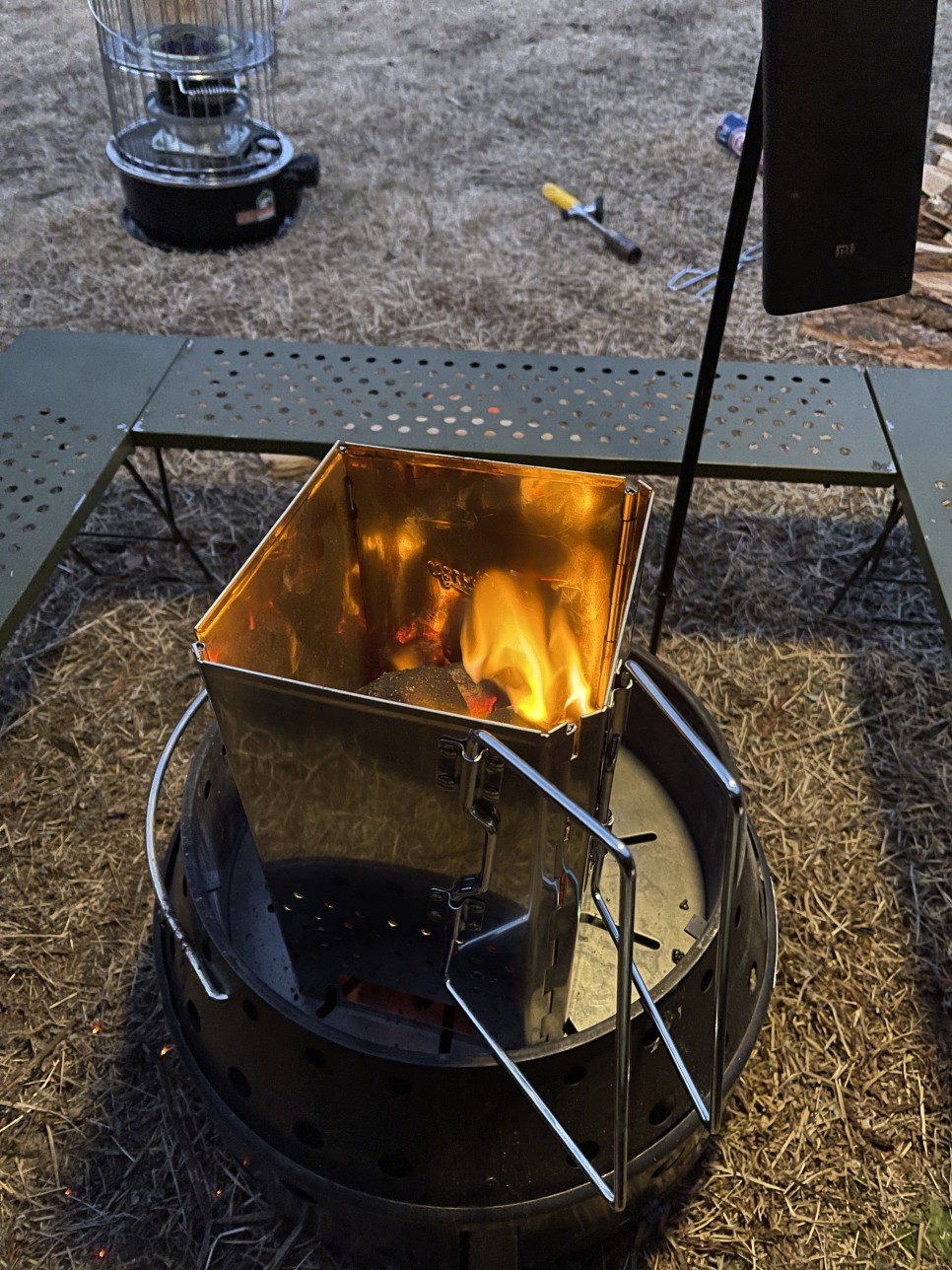 숯을 미리 올려두려고 숯에 불을 붙이고