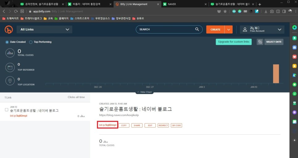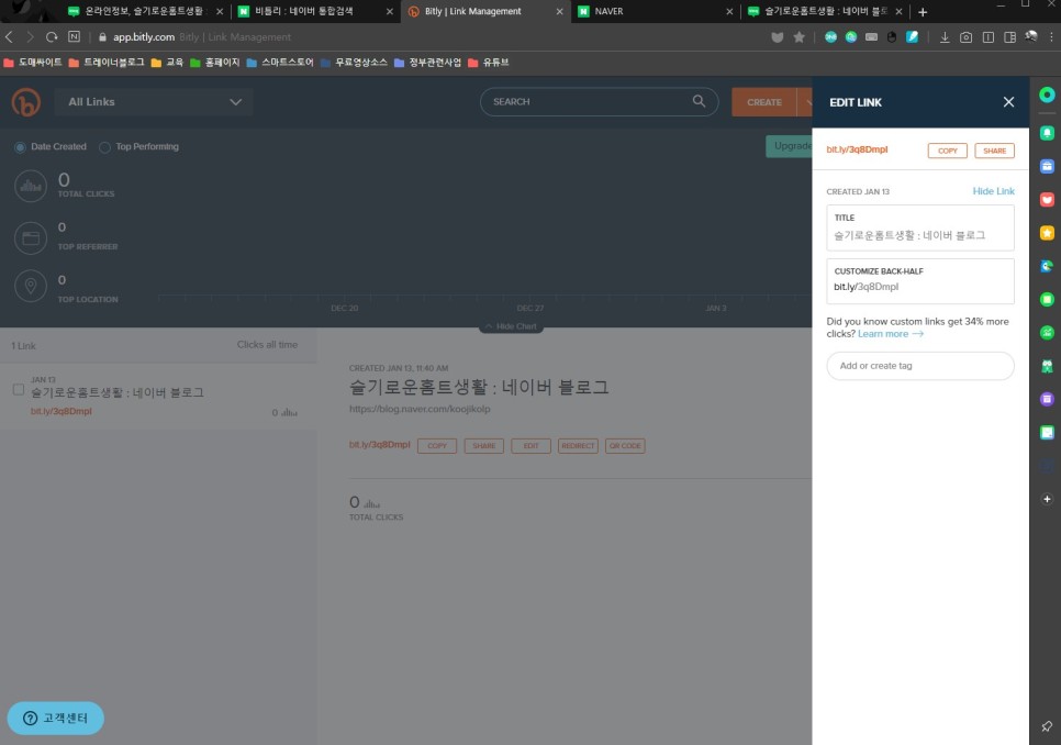 bitly(비틀림)를 사용하면 자신의 블로그나 스마트스토어, 홈페이지 등 URL 주소를 단축할 수 있고 링크를 몇 명 클릭했는지 알 수 있습니다.