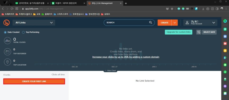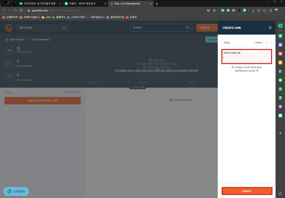 링크 만들기 create your firstli nk를 클릭하세요.