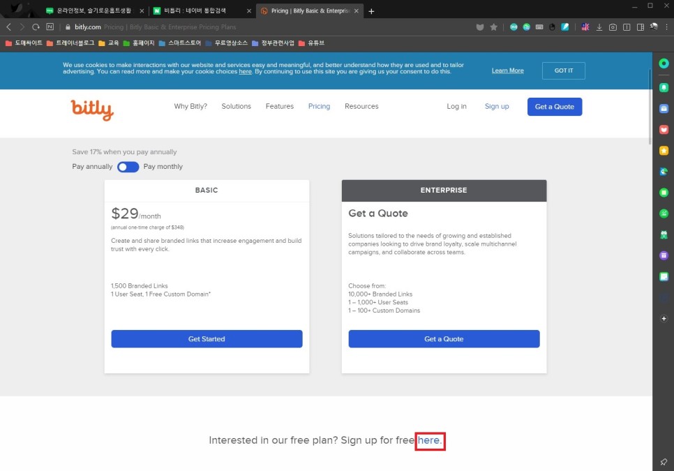 네이버에 꼬임 또는 bitly로 검색해 홈페이지를 방문한다.