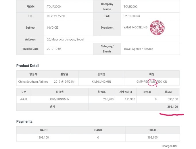 이걸 왜 내가 내는지 모르겠지만 탄소중립비행금액도 내라고 해서 20360원 추가!