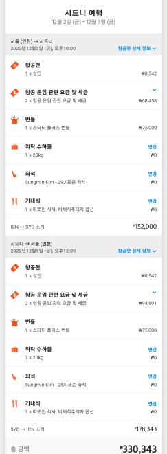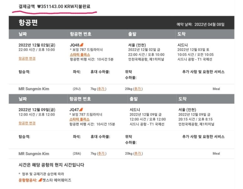 여러분 저 어제(2022년 4월 8일) 12월에 가는 호주 시드니 항공권을 사용했어요!!